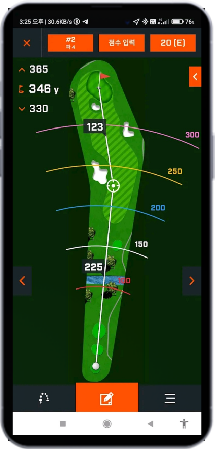 깃발, 벙커, 나무 등 모든 거리측정에서,